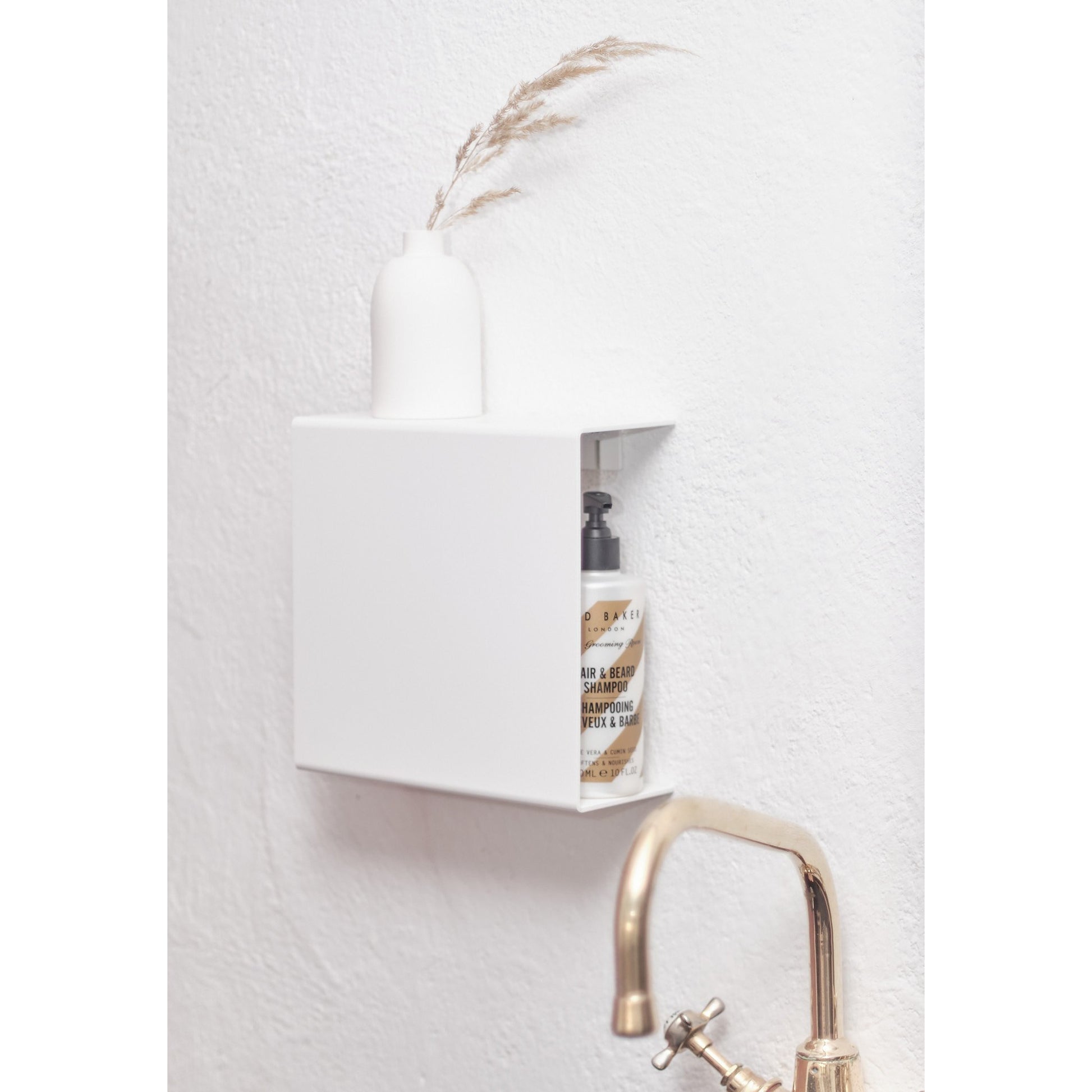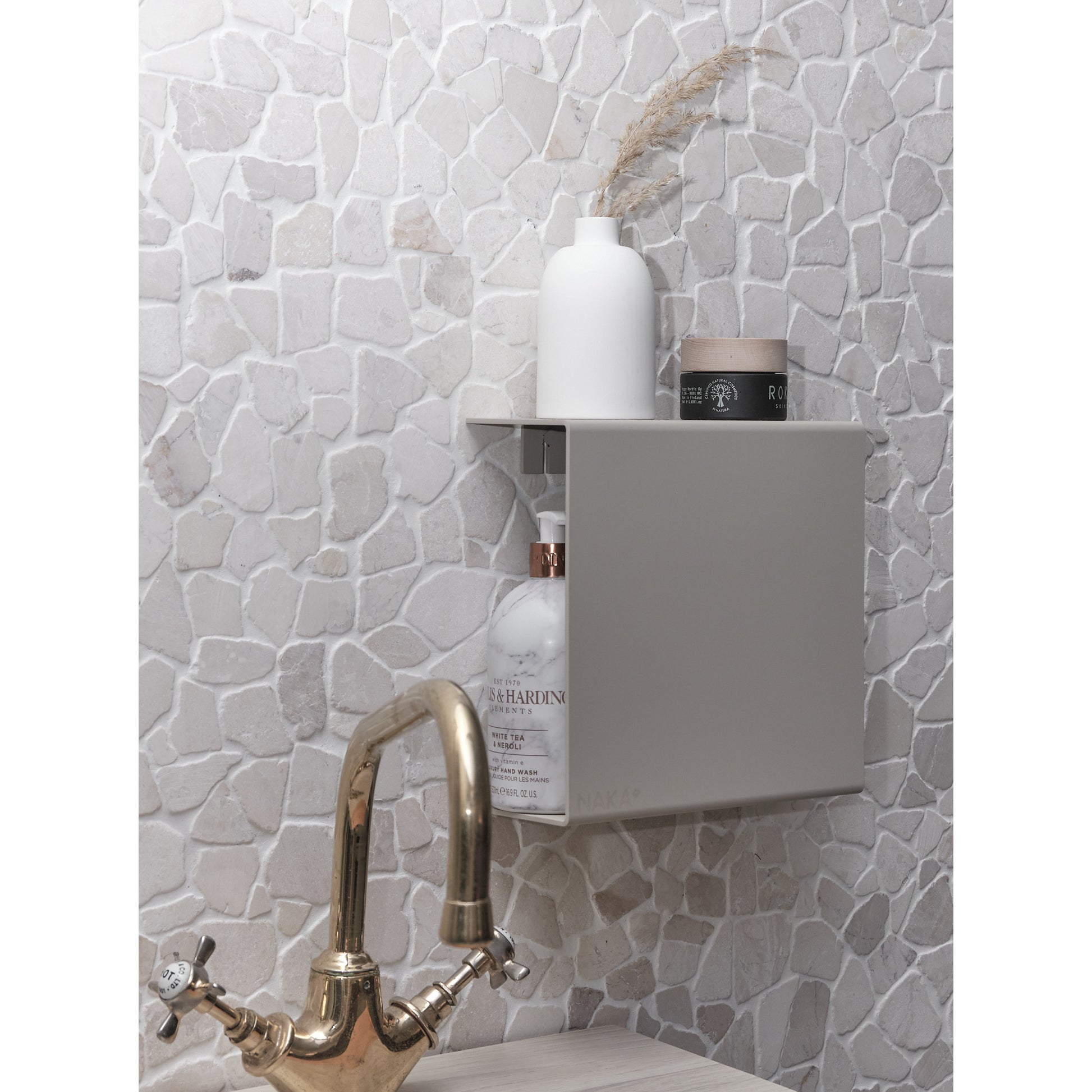 NAKA® étagère en aluminium peint. Convient bien, par exemple, comme étagère à shampooings dans une salle de bains.Montage facile et autofixant sans vis ruban adhésif.