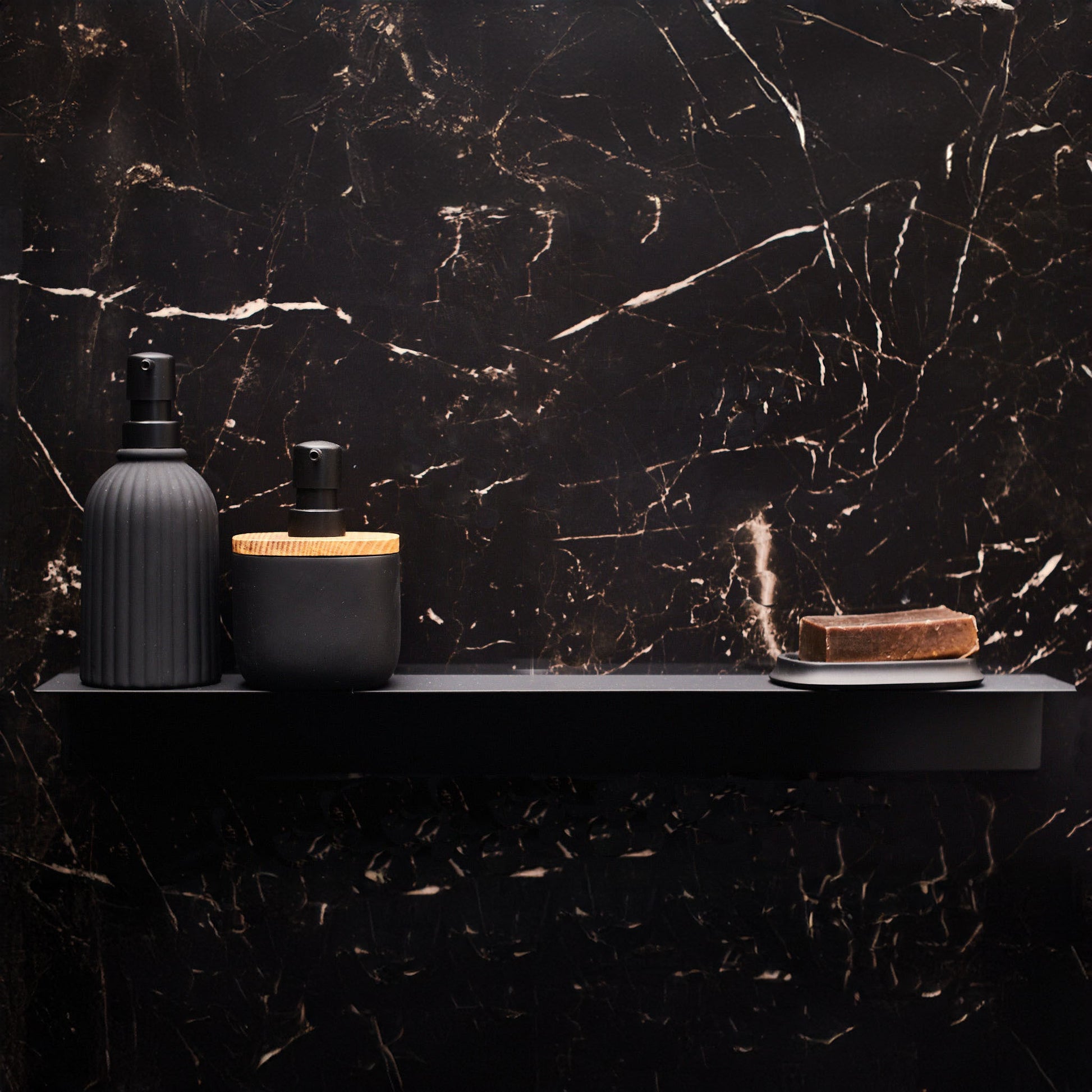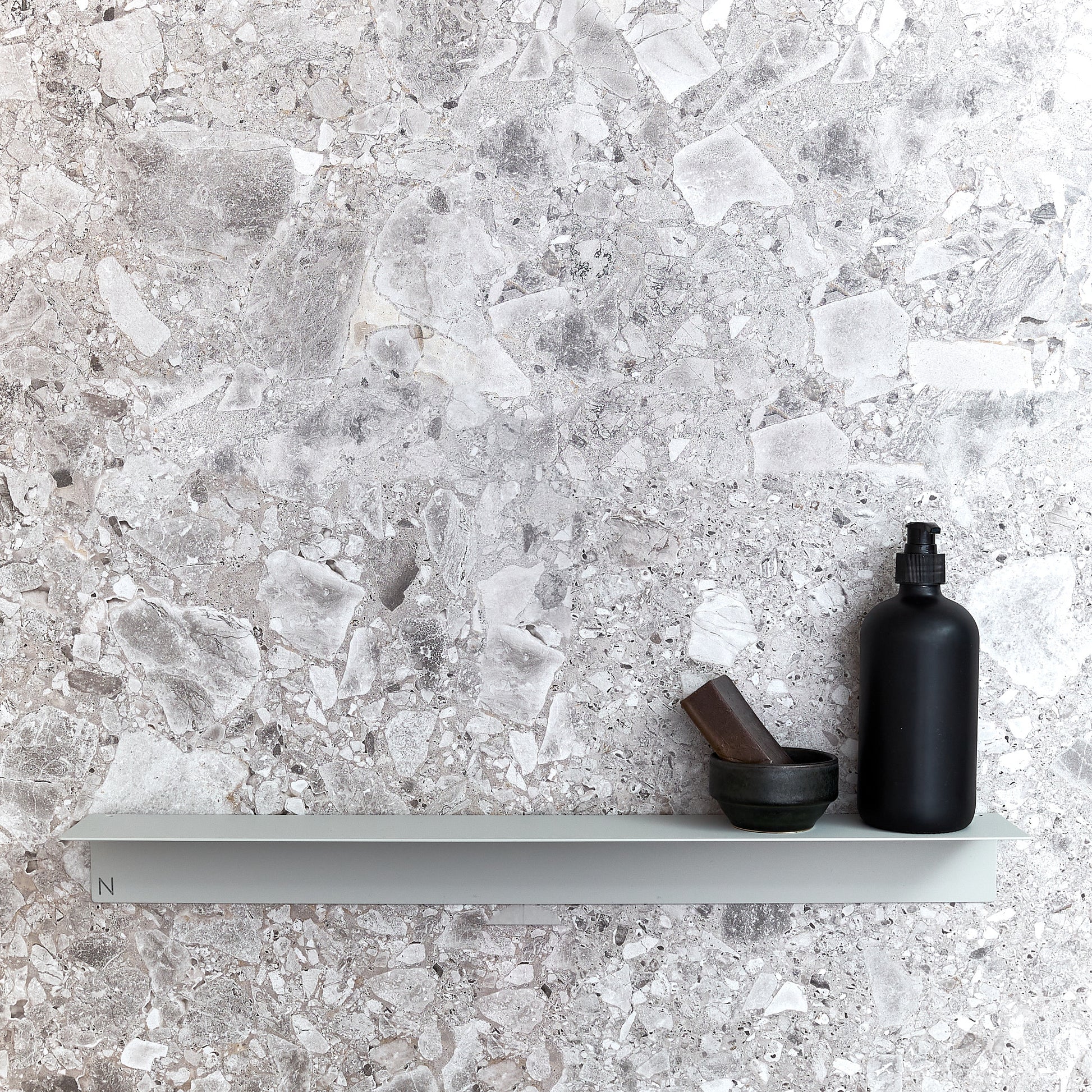 Enkel skruefri selvklebende montering. For overflater (f.eks. svært sterke strukturelle flisflater) som ikke tåler limmontering, velger du hyllen med skruefeste.