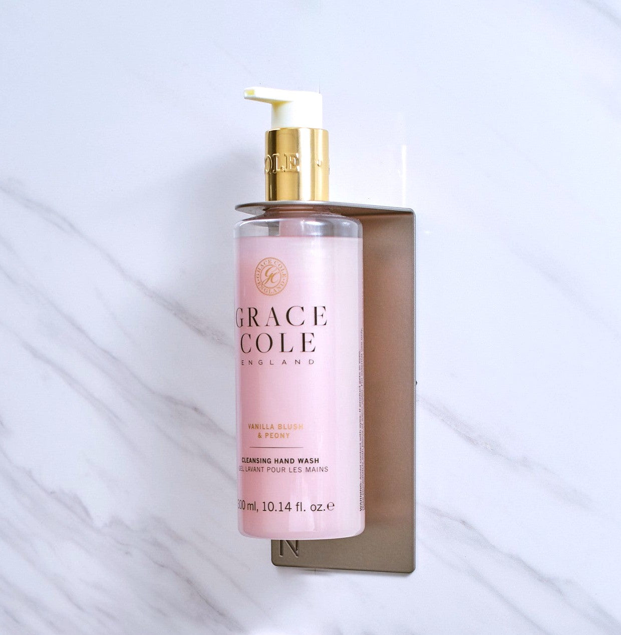 NAKA® pumpeflaskeholder, lakkert rustfritt stål. En adapterring for pumpe med liten gjenge medfølger, slik at stativet er kompatibelt med de fleste pumpeflasker.