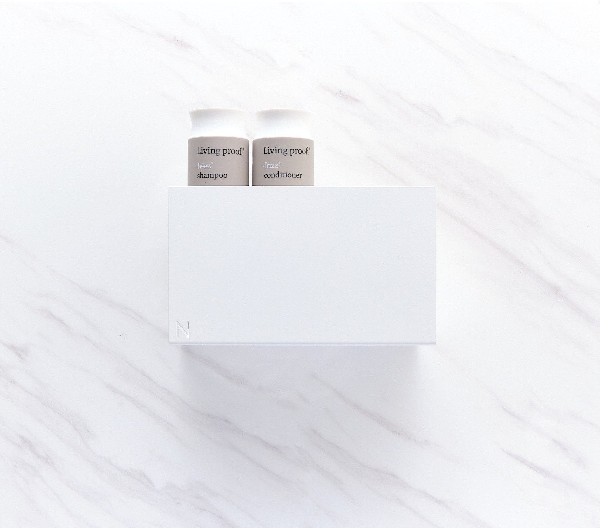 Enkel skruefri selvklebende montering. For overflater (f.eks. svært sterke strukturelle flisflater) som ikke tåler limmontering, velger du hyllen med skruefeste.